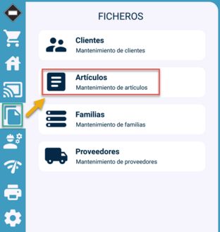 Podemos consultar la información de Artículos desde Ficheros -> Artículos: