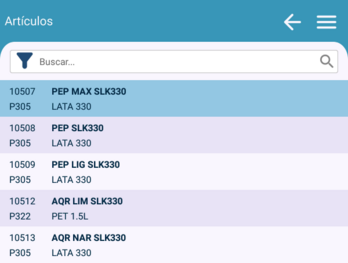 Para Consultar o Imprimir un artículo, seleccionamos el Artículo y desde el Menú de hamburguesa seleccionamos la opción deseada: