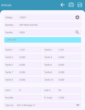 Desde este Apartado, podremos consultar los datos del Artículo seleccionado: