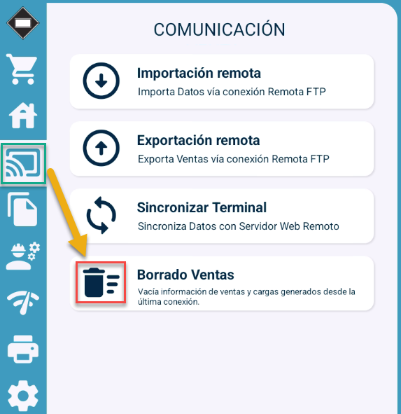 Podemos acceder a este apartado desde Comunicación -> Borrado Ventas:
