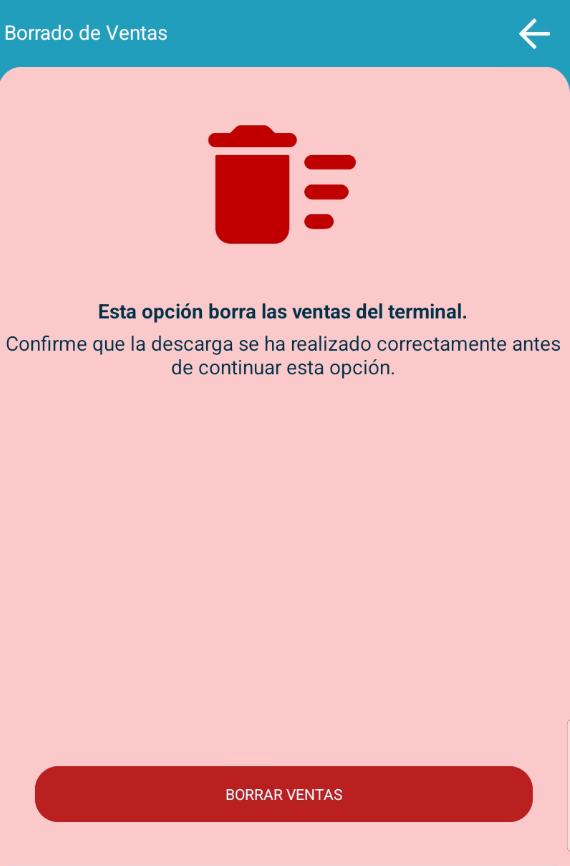 El Borrado de Ventas eliminará todas las Ventas, Incidencias y Gastos generados desde la última carga.