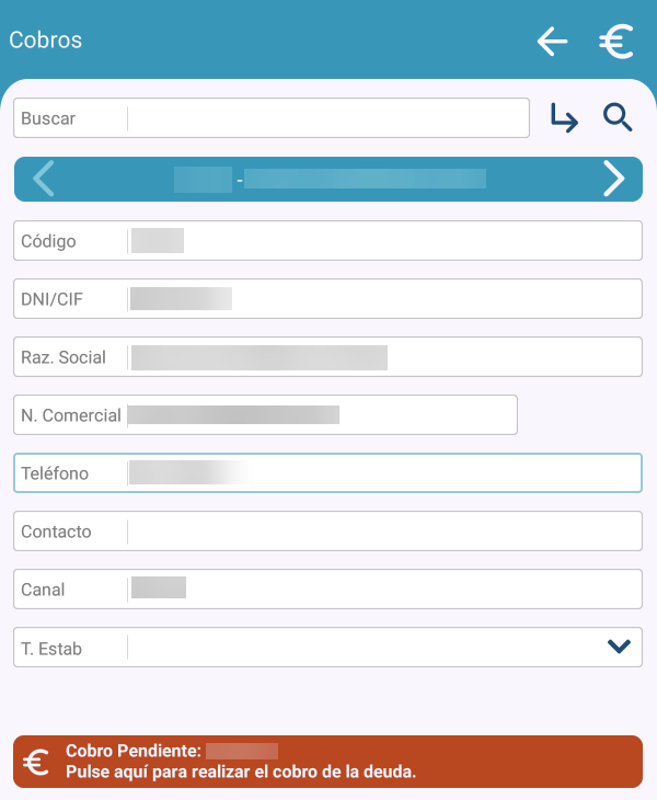 Se mostrarán, uno a uno, los Clientes con Cobros pendientes: