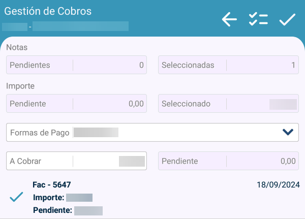 Desde la pestaña de Cobros, podremos gestionar los Cobros pendientes por parte de los Clientes.