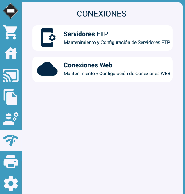 - Conexiones Web: Mantenimiento y configuración de Conexiones Web.