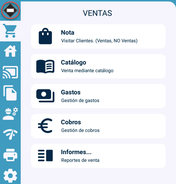 Desde el menú principal, presionaremos el Icono de Gesmobile, situado en la Parte superior izquierda: