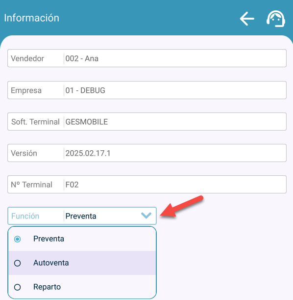 Para alternar entre Preventa, Autoventa o Reparto, tendremos que acceder al siguiente apartado: