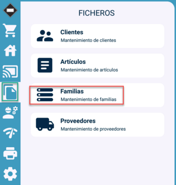 Podemos consultar la información de Familias de Artículos desde Ficheros -> Familias: