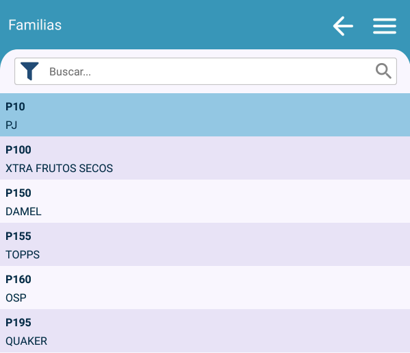 Utilizando la barra superior del Listado, podremos buscar y filtrar las Familias en función de su Código o Nombre de Familia: