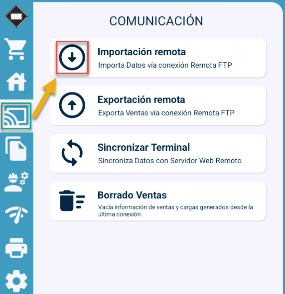 Podemos acceder a este apartado desde Comunicación -> Importación Remota: