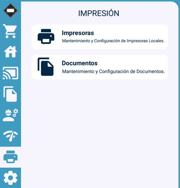 En el Módulo de Impresión, encontramos las Pestañas relacionados con la impresión de Documentos.