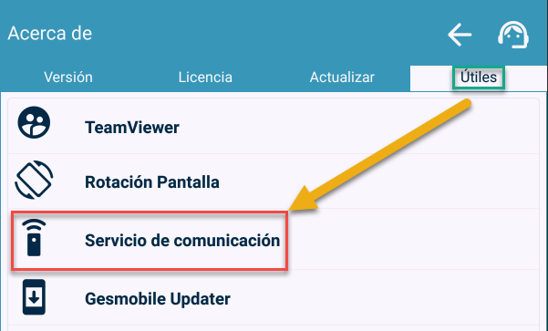 Dentro de Gesmobile, accedemos a Configuración -> Acerca De -> Pestaña Útiles -> Servicio de Comunicación: