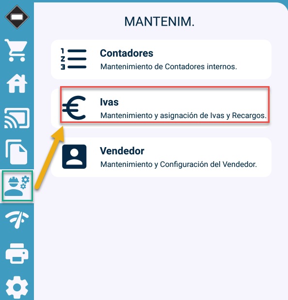 Podemos acceder al apartado de IVA desde el módulo de Mantenimiento: