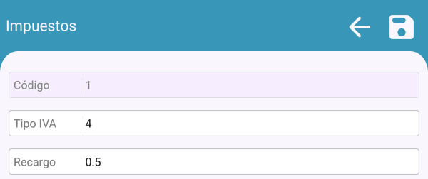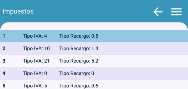 Para Modificar o Consultar un IVA, hay que seleccionarlo y seleccionar la Opción deseada desde el Menú de hamburguesa: