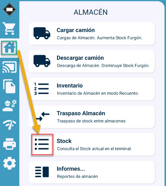 Podemos acceder a esta pestaña desde Almacén -> Stock: