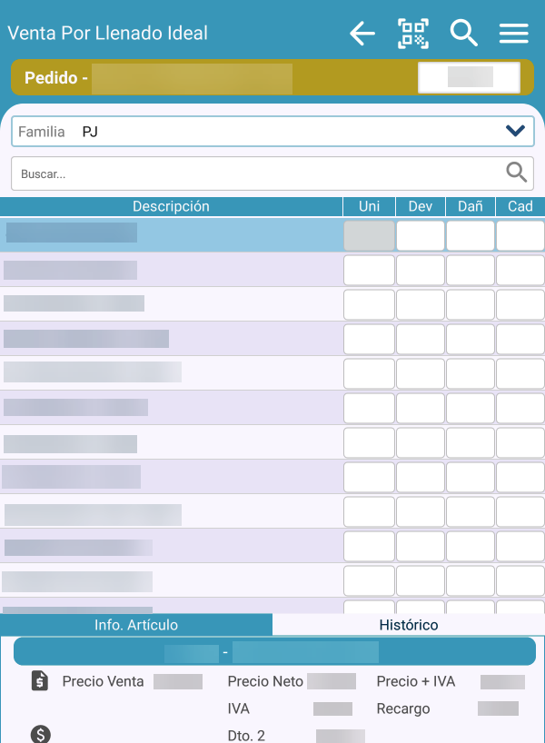 - Si no está disponible la anterior, se abrirá la Venta por Históricos (Devoluciones).