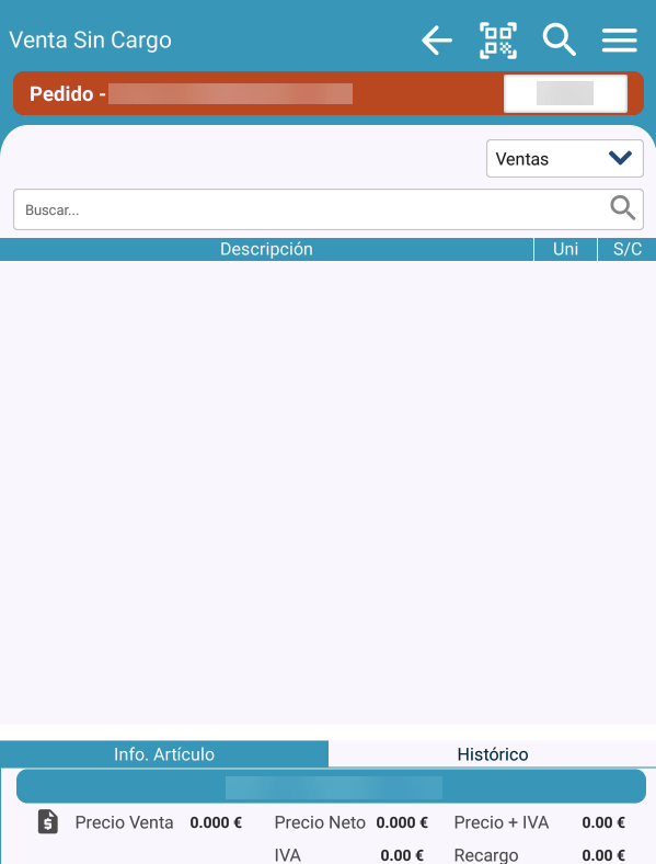 - Sin Cargo (S/C): Permitirá introducir unidades de venta SIN CARGO, es decir, a precio 0.00€.