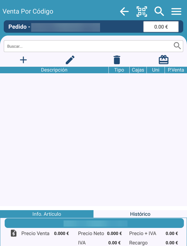 En este Tipo de Venta, tenemos unos Botones en la Parte superior, que tendrán las siguientes Funciones (de Izquierda a Derecha)