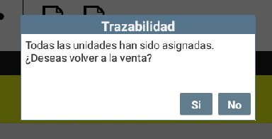 La pantalla que se mostrará en la Trazabilidad, variará en función del tipo de Trazabilidad que está asignado para las Ventas: